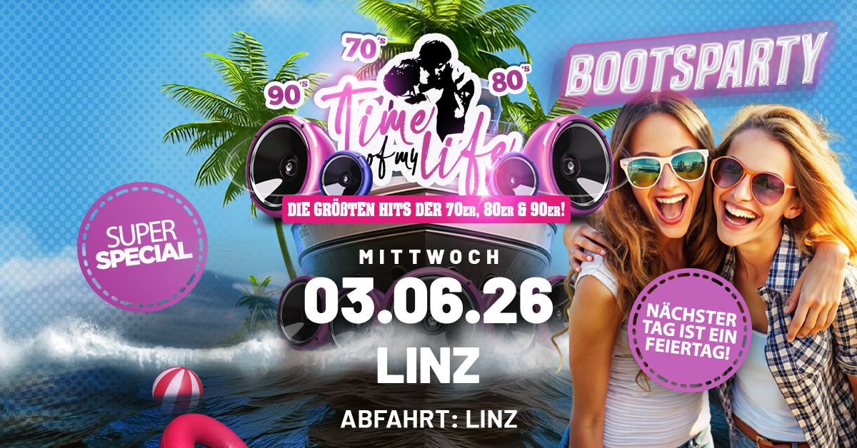 Wir machen eine Bootstour auf der Donau und dazu gibts die größten Hits der 70er, 80er und 90er!
